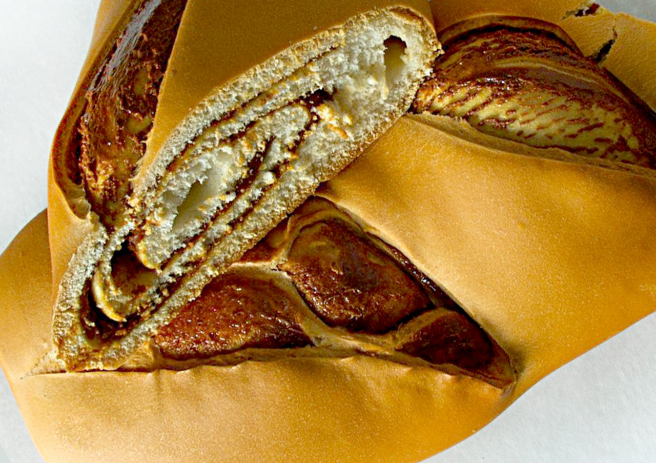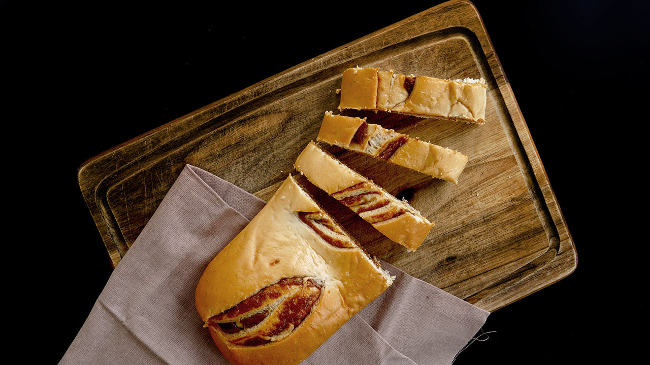 A decadent treat, this sourdough bread is intertwined with delicious dulce de